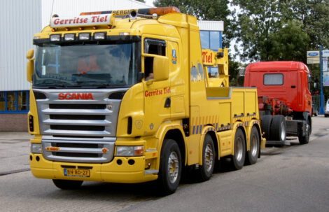 Vrachtwagen met pech wordt naar garage Scania gebracht door collewijn,, foto komt van chauffeur Collewijn.