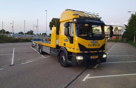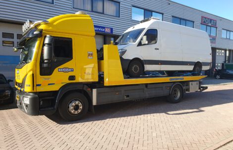 Auto op transport naar garage terug brengen Mercedes Actros