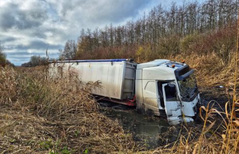 vrachtwagen half in sloot Boveneind-noordzijde Benschop 31-01-2023 Kooijman vianen had de klus