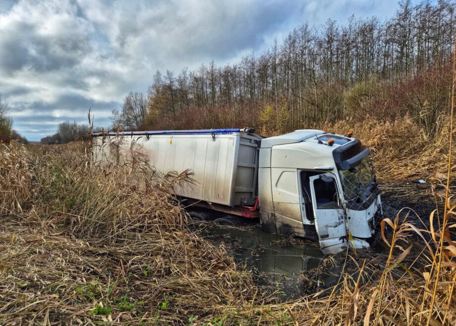 vrachtwagen half in sloot Boveneind-noordzijde Benschop 31-01-2023